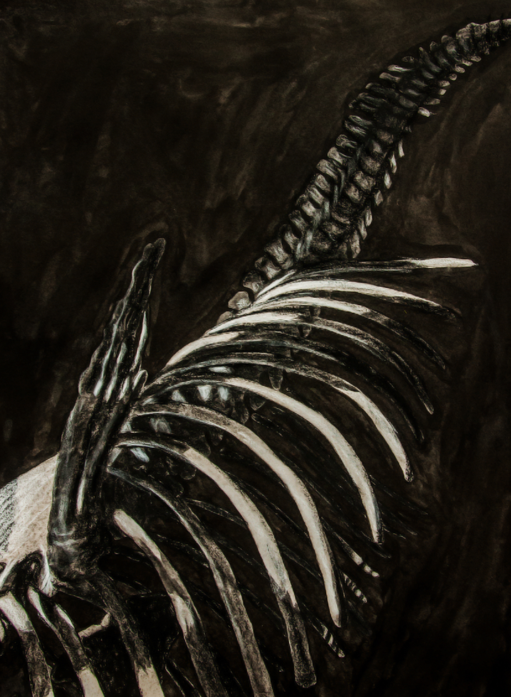 When I was in school, I lived right across the street from the Natural History Museum of Los Angeles. I would spend weekend afternoons there, just looking up at the bones of magical beasts. This project was a charcoal meditation on and worship of those short lives from long ago.